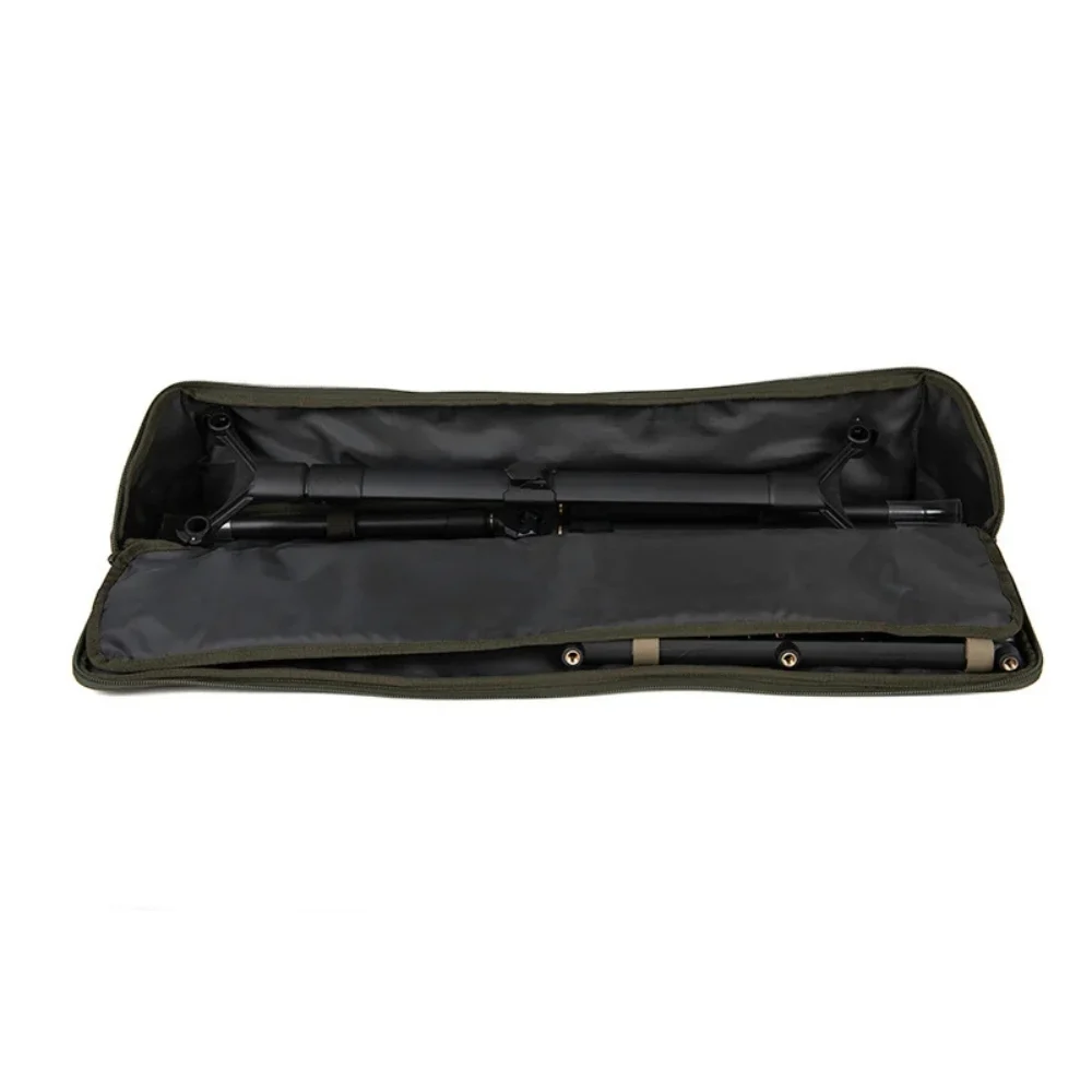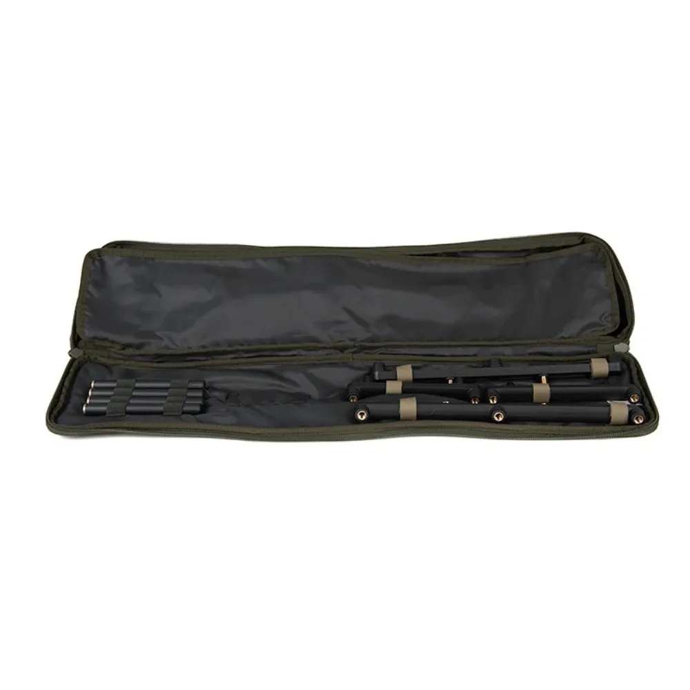 De tripod wordt geleverd in een robuuste polyester draagtas met dubbele heavy duty ritsen, zodat je alles netjes en beschermd mee kunt nemen naar de waterkant.